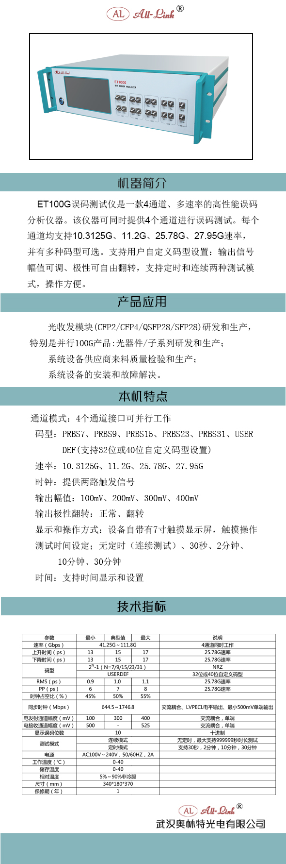 ET100G误码测试仪