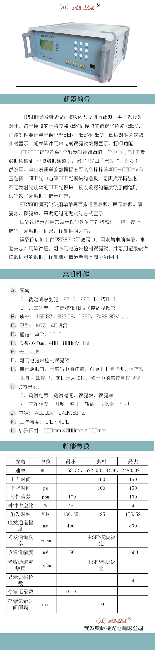 台式误码仪:ET2500